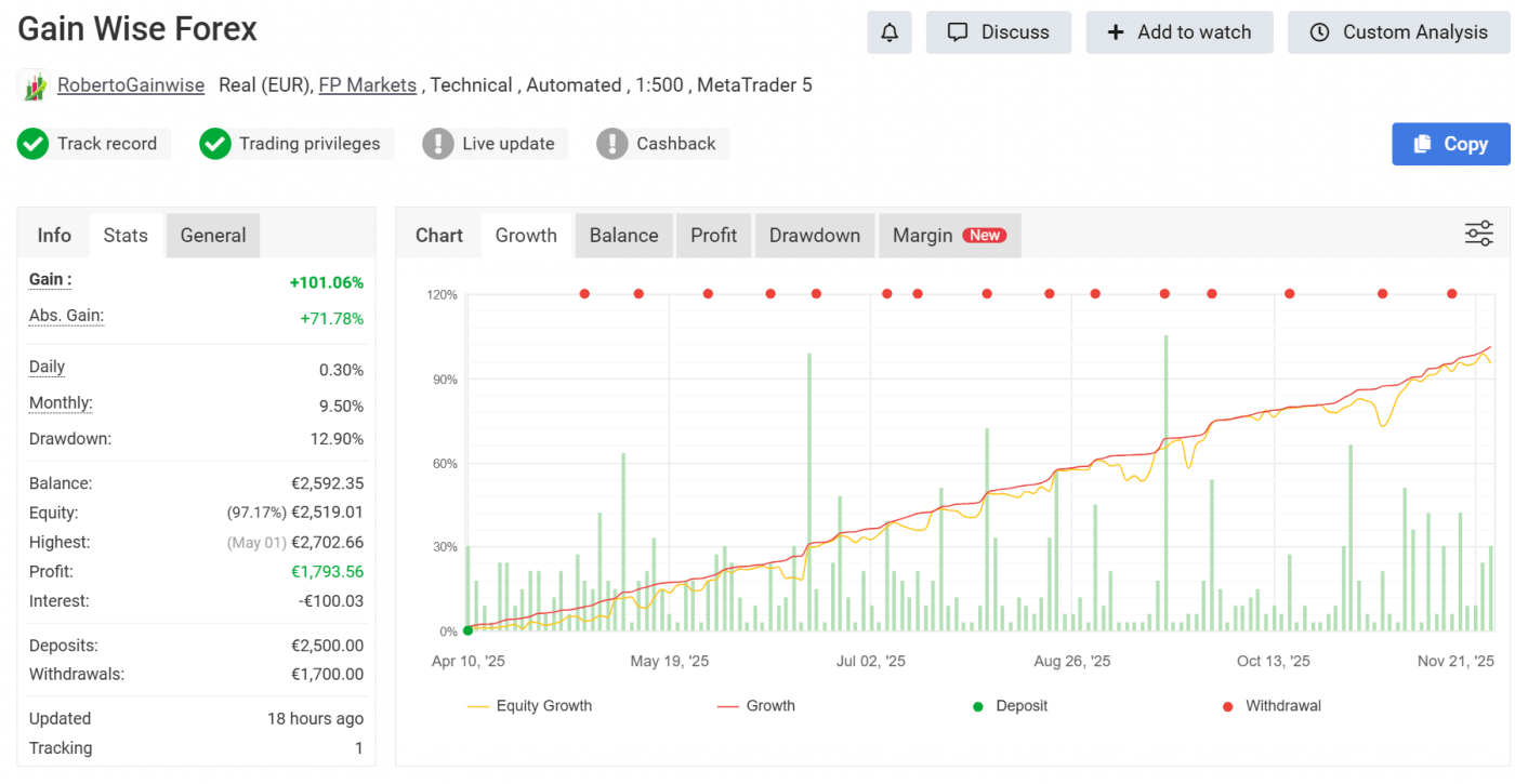 Drow Down minimo fino ad oggi in due anni è stato minore del 18% ma nella media sta quasi sempre sotto il 10%